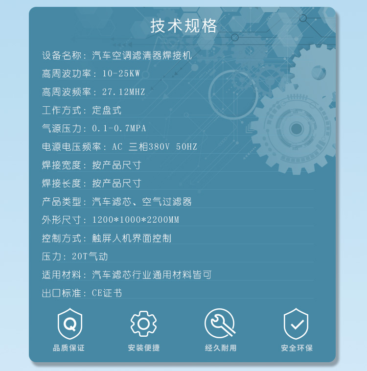 三,非標高行程定盤式高周波熔接機 的技術規格: