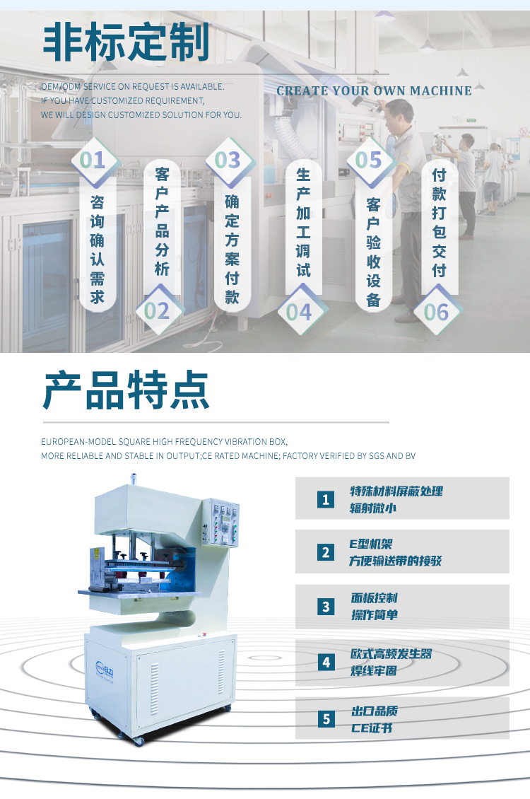 | 適用范圍: | 專用于跑步帶,輸送帶、皮帶檔板、工業皮帶裙邊的高周波焊接熔接,同時也適用于雙面吸塑焊接,吸塑泡殼與紙卡封合,特殊塑膠材質 |