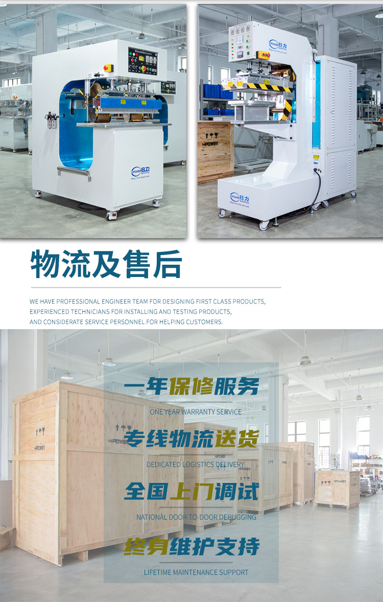 高周波輸送帶熔接機 工作原理:是利用機器上下極之間的高頻變化的磁場,促使塑料件內部分子運動摩擦產生熱量,然后借助機器壓力和配套模具作用下達到熔接定型的效果。