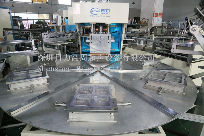 第6個工位由機械手自動將轉盤上完成熔接的產品和廢料取下放入周轉箱(需如成品和廢料取出后分開不在同一周轉箱,可加裝一條流水線讓產品取出后放入流水線水流入產品箱,廢料由機械手直接放入廢料箱),從而完成一個完整的流程。作業員按照轉盤節拍持續置入產品原料,高周波作業節拍高效率地自動化完成熔接作業。用戶可自由設置作業時間,一般為8-12秒一個作業節拍。 |