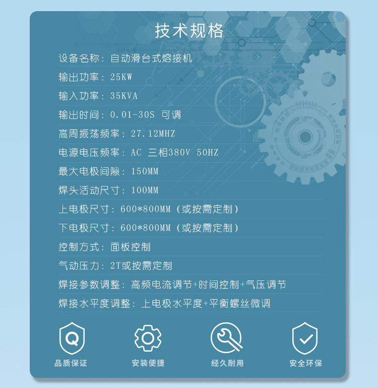 三,單頭推盤式高周波塑料熔接機的技術(shù)規(guī)格: