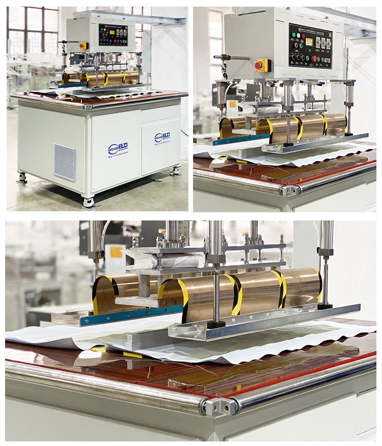 | 機器特點: | 機器配十字線激光器定位燈,方便對位拼接;工作臺上下加裝滾輪,避免材料送料定位時刮傷;NL-5557防火花電子管保護裝置,使模具及產品的損害降到最低程度;機器模頭可懸掛在屋頂的懸梁上,無限寬度放料方便大面積產品連續拼接; |